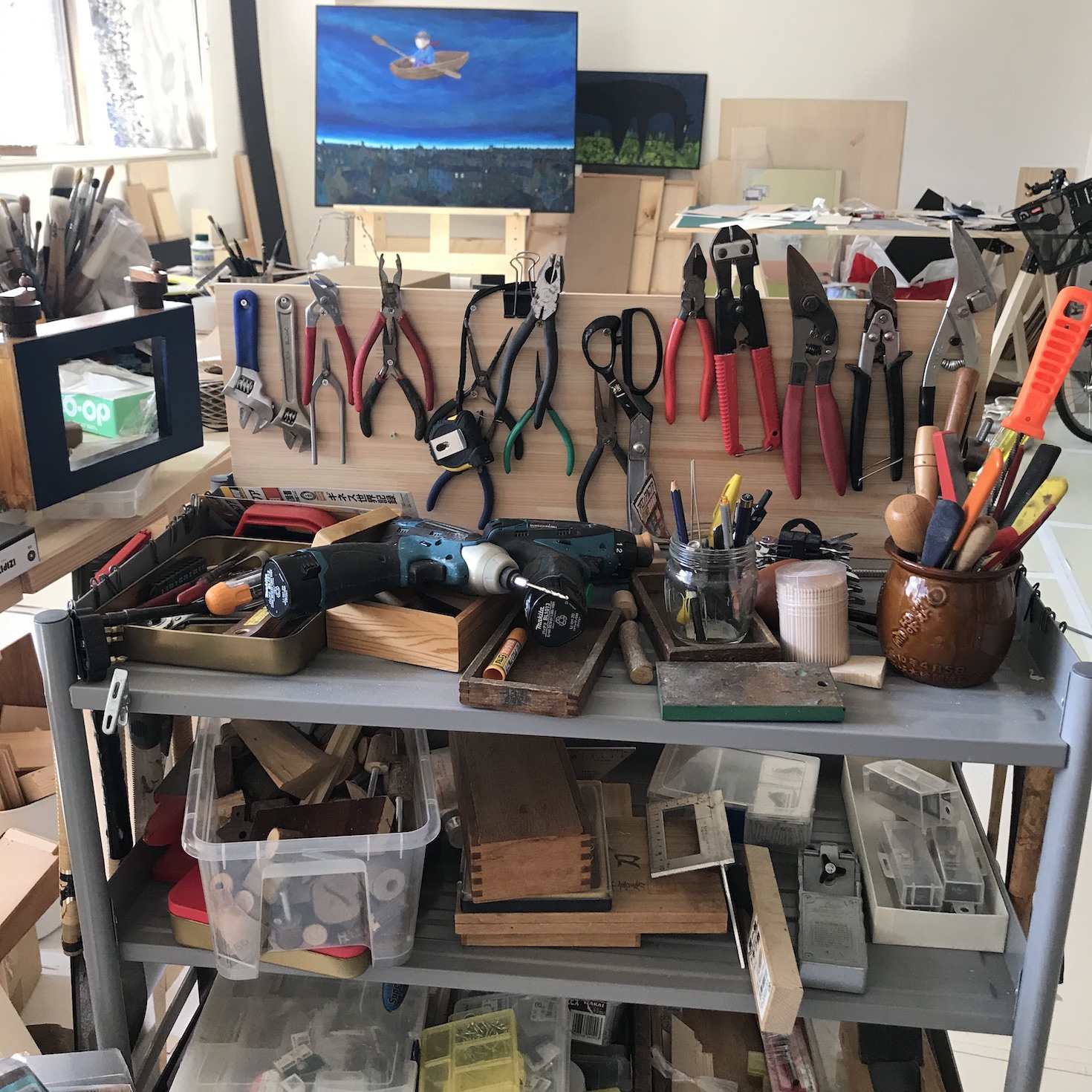 Sometimes I work on sculptures, too. I have lots of carpentry tools and pieces of timber and my friends say that my studio looks more like a cabinetmakerʼs.