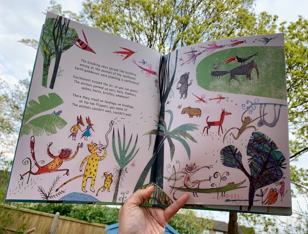 ‘Excitement spreads like wildfire through the jungle. Earth-goddesses are planning a conference! From Australia to Antarctica, the Amazon to Africa, goddesses will debate the burning environmental issues of our times…and bushy-tailed, smooth-talking Coyote wants in on the action! Can this infamous trickster come up with a plan to infiltrate the conference and leave a lasting legacy for our planet?’