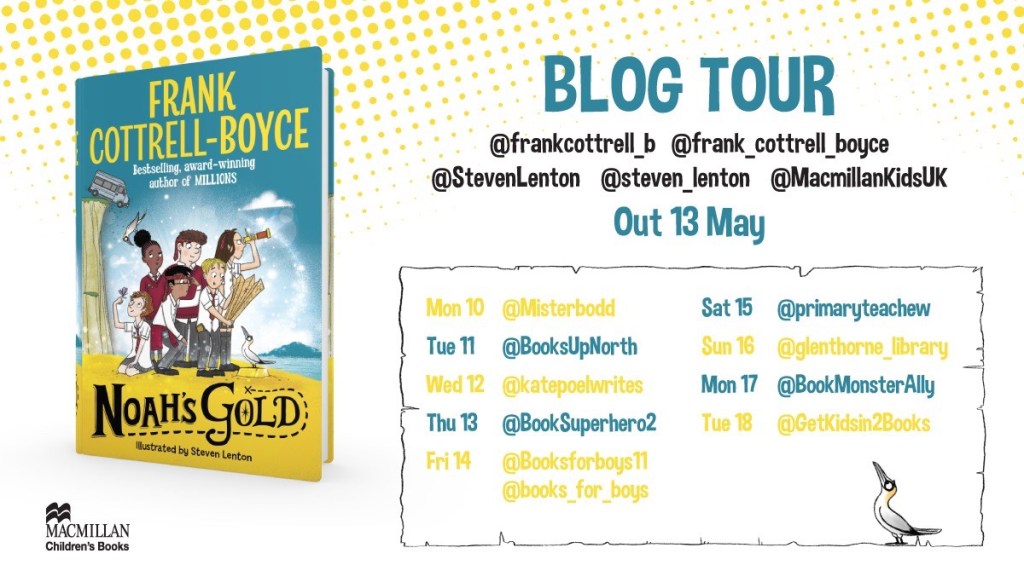 You know that when you start a new Frank Cottrell-Boyce that you’re going to be in for a treat. I wasn’t disappointed when I cracked open the cover of ‘Noah’s Gold’ and hopped aboard the minibus with the pupils of St Anthony’s.