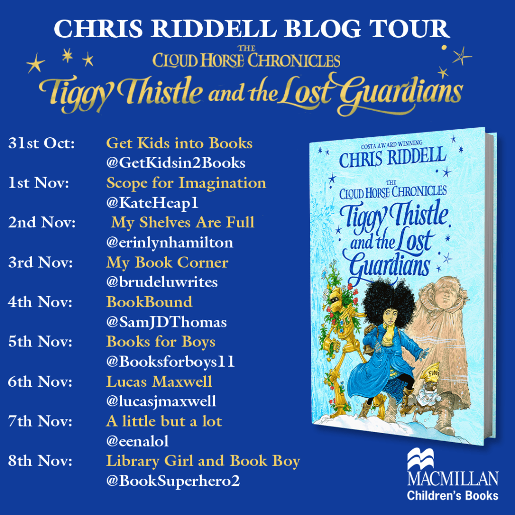 I want to start with a disclaimer: Chris Riddell is my favourite illustrator and I’d buy any of his books just to pore over the illustrations. In fact, I preordered a copy of this from a bookshop who were lucky enough to have some of Chris’s beautiful illustrations to include them. Therefore, it is with great joy, that I have been given permission to share two of the beautiful illustrations from Tiggy Thistle with you further down in this blog post…